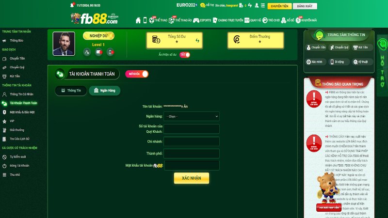 Cách cập nhật thông tin thẻ ngân hàng rút tiền FB88: