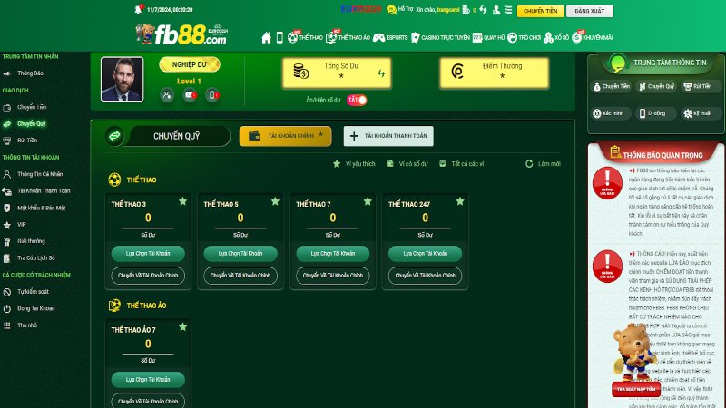 - Nếu muốn rút tiền FB88 thì phải chuyển quỹ từ các tài khoản game về tài khoản chính.